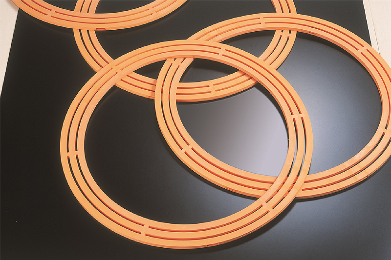 土間工事用、スロープの工事用等のすべり止めに使う、ドーナツ型のゴム製商品です。コンクリート斜面等でのスリップ防止のために、ドーナツ形状の模様を形成します。現場状況等により異なりますが、転用が可能です。