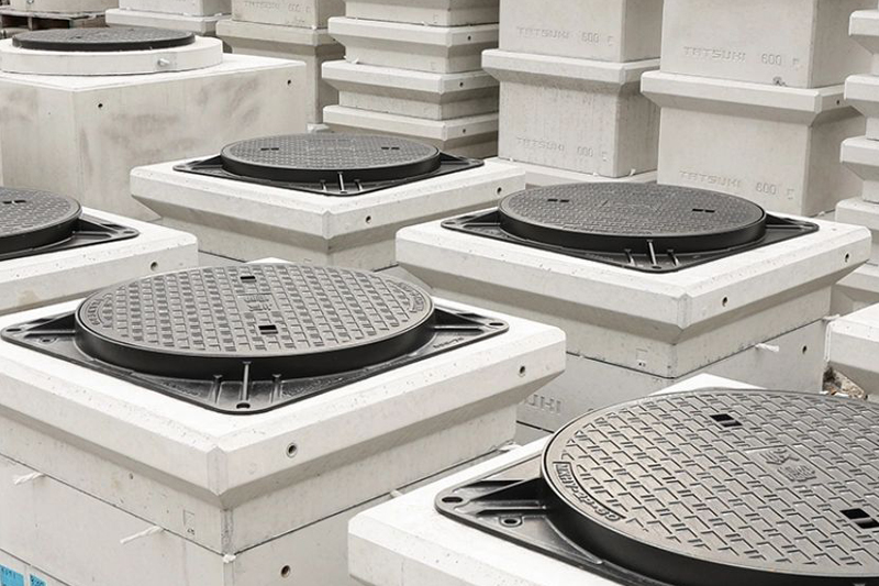 ハンドホールは、地中管路埋設工事においてケーブルの挿入、撤去を行うための中継用として使用される地中箱です。現場でコンクリートを打設して構築することが稀にありますが、民生用であればほとんどの場合、工場製作によるプレハブ方式が採用されます。